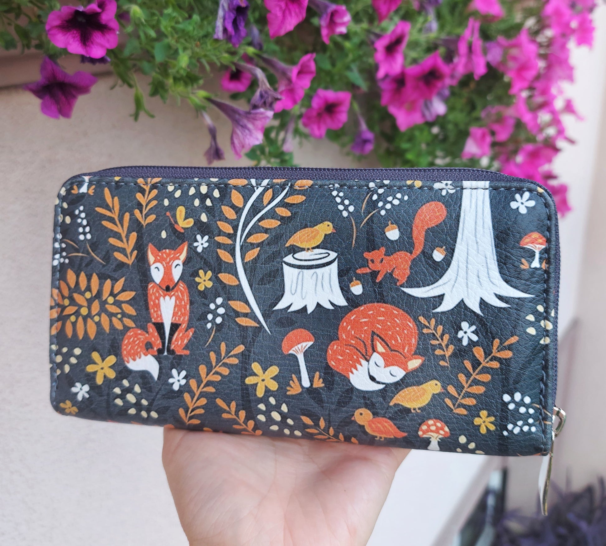 Novčanik poseduje tri odvojene pregrade, sa obe strane male pregrade za kartice i u sredini džep za sitan novac.